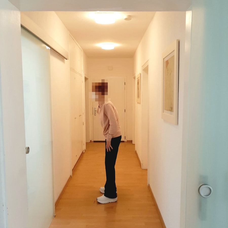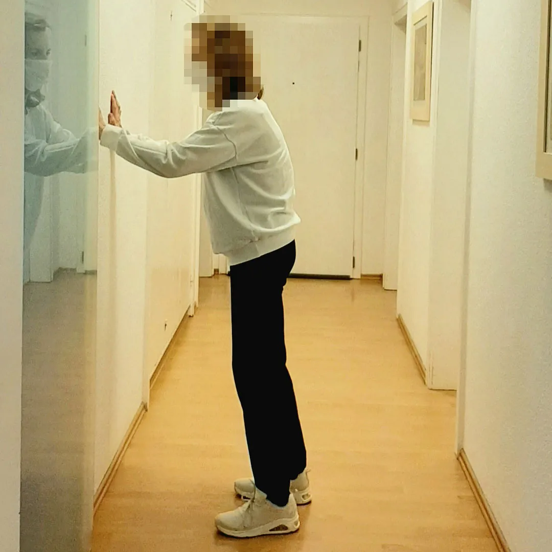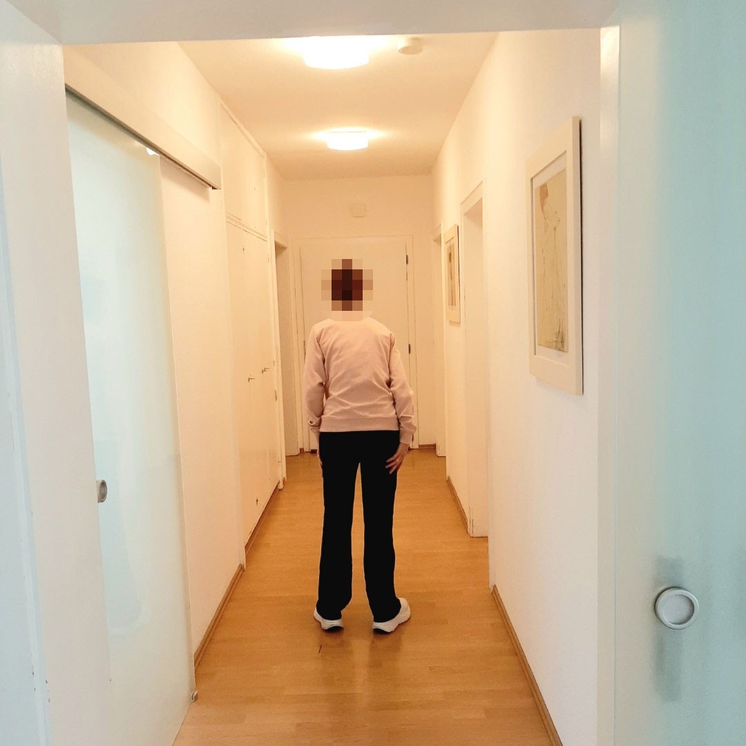 Bild vorher: Frau X hat Schwierigkeiten sich gerade zu halten