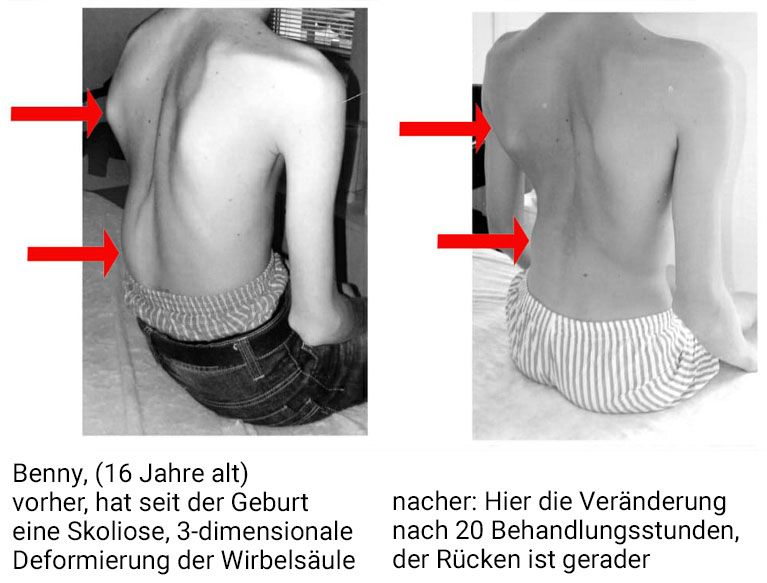 - Es wurde eine sichtbare Verbesserung der Skoliose erreicht, selbst im Erwachsenenalter.